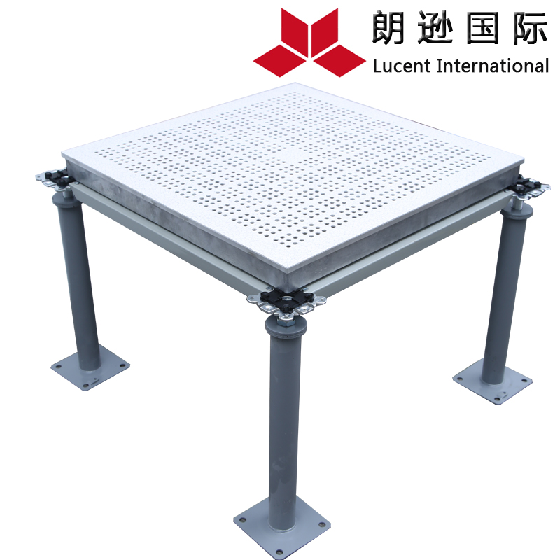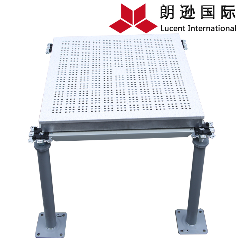 鋁合金防靜電地板系統(tǒng)有地板、橫梁、支座組成。橫梁和自身高度可調(diào)的支座用螺釘連結(jié)成穩(wěn)固的下部支承系統(tǒng),地板鑲嵌入橫梁圍成的方格內(nèi)。